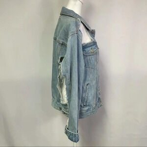 Pull & Bear Mesh Distressed Light Wash Denim Jean Jacket S