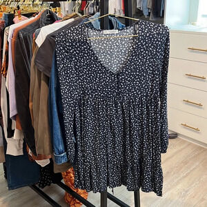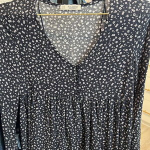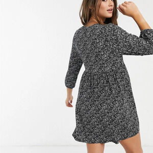 Pull & Bear Smocked Floral Mini Dress In Navy Blue