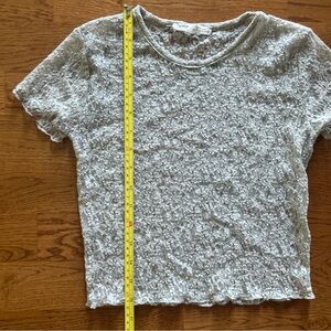 Pull & Bear Womens Lace Crop Top S Sheer Mesh Cropped Gray Baby Tee T Shirt Crew