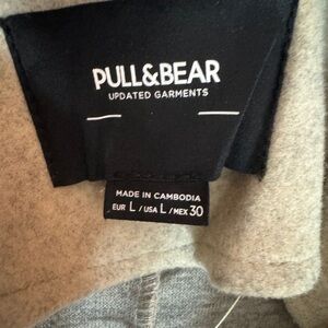 Beige fabric with Pull&Bear label. Made in Cambodia coat in good condition with some light stain see photo please thank you.