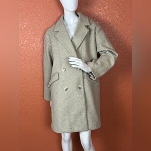 Pull & Bear Women's Light Beige Camel Overcoat size Large Smart Casual Coat
