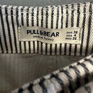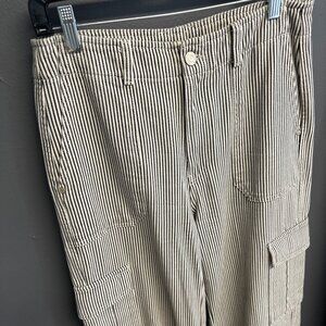 Pull & Bear Womens Size 4 Pants Pinstriped Denim Wide Leg 100% Cotton Cargo