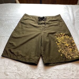 Pull & Bear XDYE Brown Striped Board Shorts Size Large