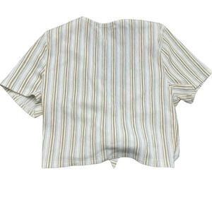Pull & Bear (Zara) women’s tie-front crop top. White/beige/blue. Small.