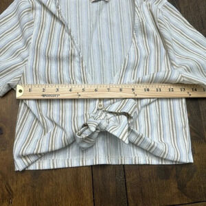 Pull & Bear (Zara) women’s tie-front crop top. White/beige/blue. Small. Smoke free home. See pictures for approximate measurements.