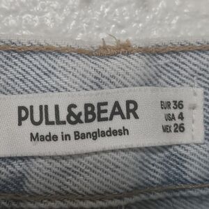 Pull & Bear high rise button fly straight leg jeans size 4 see pics for verification of size used no holes or stains however has bleach spot and jeans has been hemmed measurements approximately flat lay waist 13 1/2 front rise 11 1/2 inseam 22