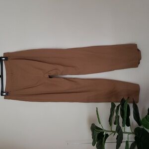 Pull & Bear tan trouser pants, career pants, zipper and button closure, front leg seam, high rise, straight wide leg, women's size large.