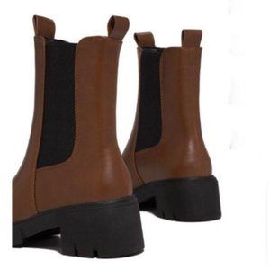 Pull On Lug Sole Chelsea Boots in Rust Brown