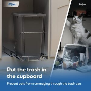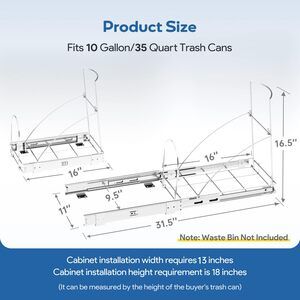 The pull-out rail rack is made of high-quality heavy-duty steel with a chrome finish to withstand the wear and tear of daily use. Note: trash cans are not included. Your trash can or recyclables are stored under the kitchen cabinet, the waste in this convenient location can slide out. Sliding shelves cleverly hide your trash while providing easy access with just a pull of the handle. This rack pull out bin under the sink has a ball bearing track system to support weight loads, they go in and out smoothly without feeling wobbly or wobbly - no matter how full your bin is!