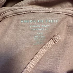 American Eagle pull over light weight hooded sweatshirt/long sleeve shirt. Has the logo across the chest and pockets on the bottom front. Never worn. Size large in men’s.