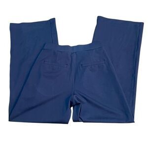 Made of 79% recycled polyester and 21% elastane. Features and elastic waistband, belt, loops, front pockets, wide leg, and faux back pockets. Laying flat measure 12.5" in the waist, 19" in the hips, 11" rise, and 30" inseam. Super soft.