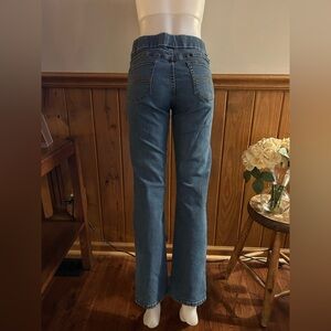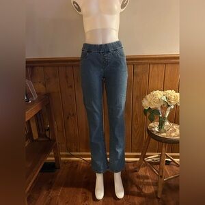 Pull on denim jeggings, 10P Lee Styleup boot cut flat front jeans, petite, short, tummy smoothing