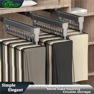 Pull out pants rack closet organizer slide out clothes hanger rail space saving