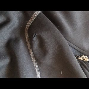 Brand new, never worn....but when I took it out of car I got it caught on the fence. Two small holes by the zipper on the left sleeve. Go figure!!!