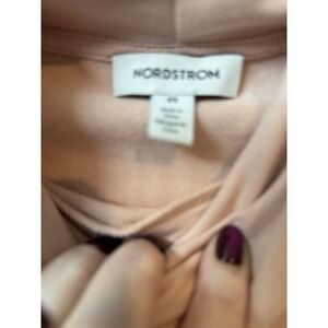 This pink smoke pull-over sweatshirt from Nordstrom is a stylish addition to any wardrobe. The XS size and regular fit make it perfect for women who prefer a basic and comfortable style. The sweatshirt features ruffled sleeves, adding a touch of femininity to the overall design. It is brand new with tags, making it a great choice for those looking for a fresh and trendy piece to wear.