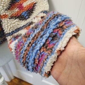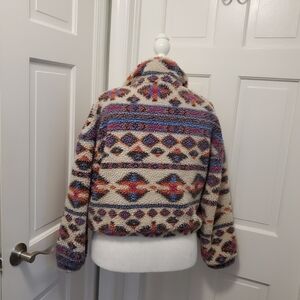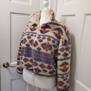 Pull&Bear Colorful Faux Sherpa Pullover Crop Style, Size XL. CASUAL AZTEC