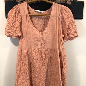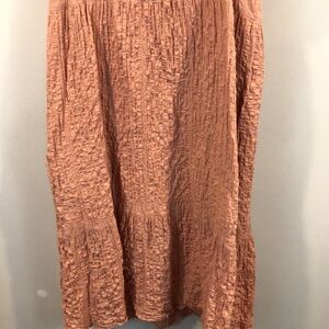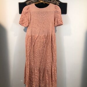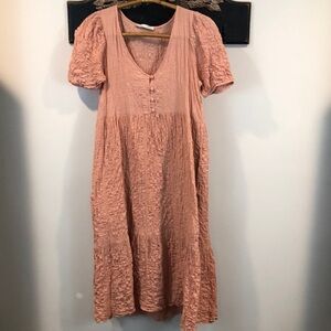 Pull&Bear crinkle textured tiered boho midi dress size medium. It is in a light mauve pink color. The skirt part of the dress is lined.The approx measurements are armpit to armpit is 16.5 inches and the length from shoulder to hem is 44 inches. It is in great condition.