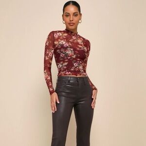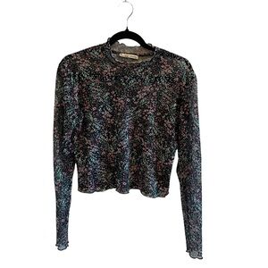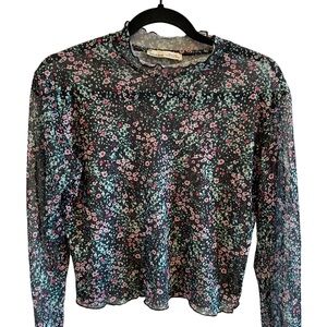 Pull&Bear Floral Mesh Long Sleeve Top Size XL