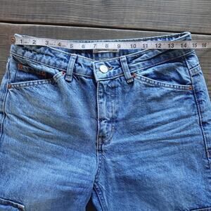 Pull&Bear Jeans Womens 4 Blue Cargo Straight Leg Utility Side Pockets Denim