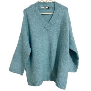 Pull&Bear Knit Oversized V-Neck Drop Shoulder Womens Sweater S Blue