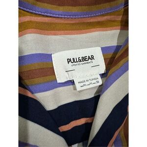 Pull&Bear Mens Multicolor Striped Collar Button Down Shirt sz M