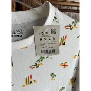 Pull&Bear Surfboard Graphic Tee White Short Sleeve NWT Men's EUR Medium