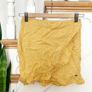 Pull&Bear Yellow Gold White Polka Dot Ruffle Front Mini Wrap Skirt Size Small