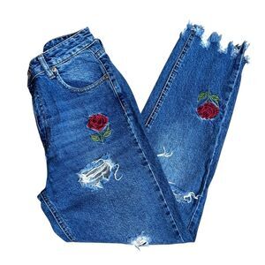 Pull&Bear Distressed Rose Embroidered Jeans Size 26