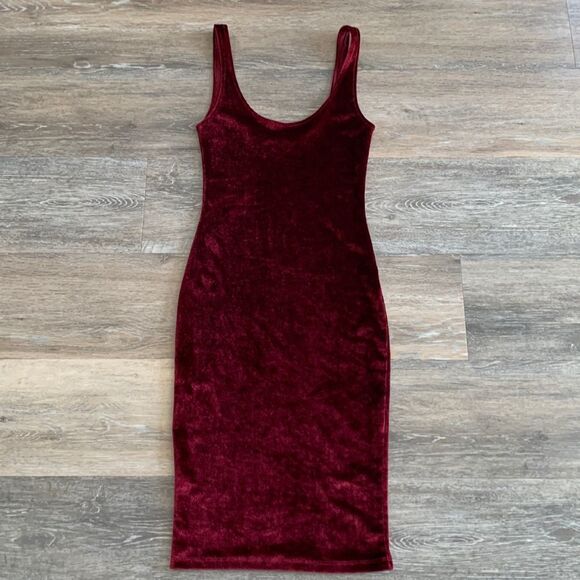 Such a cute dress!! Burgundy/wine color .. in like new condition.. no flaws..