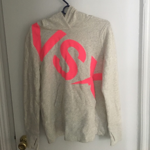 Hooded white pullover with neon pink VSX on front and cutout in back. Victoria's Secret sport, barely worn