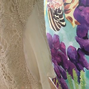 EUC Anthropologie Knitted & Knotted sweater. Loose open knit and chiffon side panels make this sweater perfect for all seasons. Lightweight and flowy.