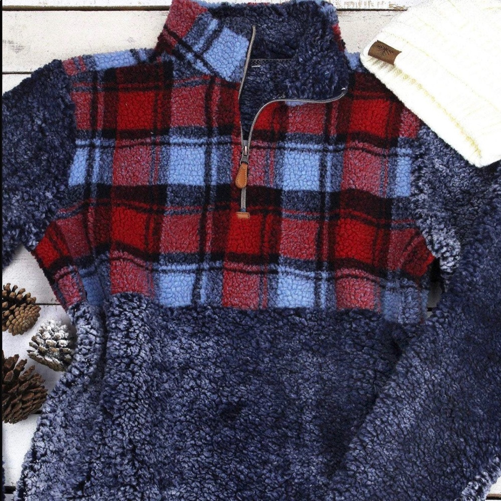 This soft fleece quarter zip pullover features a stylish plaid design. This pullover is perfect for fall and winter. This is super soft and cozy! We also have more styles and colors available. Sweet Peaches Boutique.