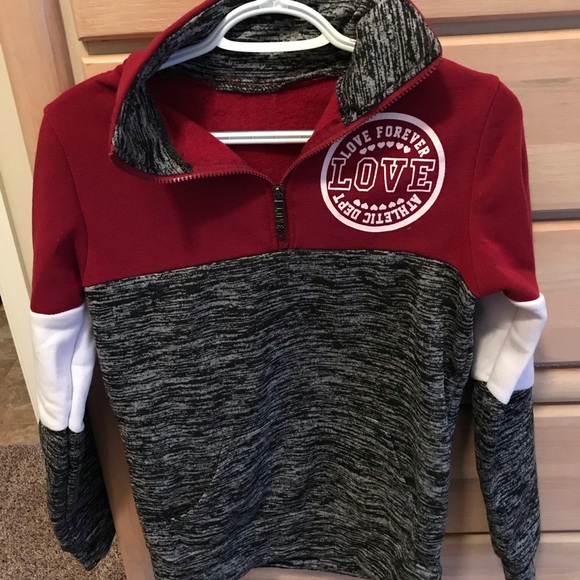 Cute red and gray pullover. Fleece material. Very warm and in great condition.
