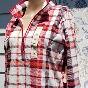 Extremely soft and comfortable wine plaid pullover. Scoop neck zipper on front. Would be great for a cool night of camping or hanging out with friends.