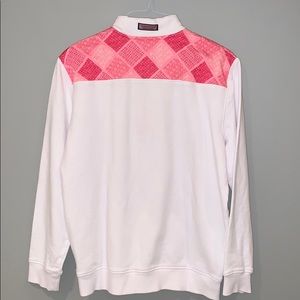 Vineyard Vines white pullover with pink accents.