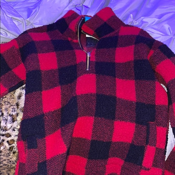 Fluffy plaid pullover. Never worn