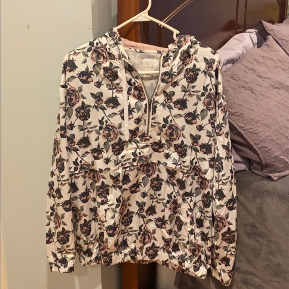 Lovely rose pullover! Has pockets and a zipper pouch. Hardly ever worn. Trust me it looks better on you, than on the hanger.