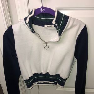 Cream, green, and blue turtle neck pull over. Very cozy in the winter