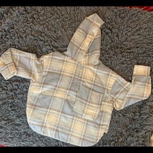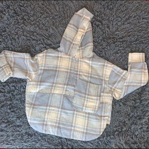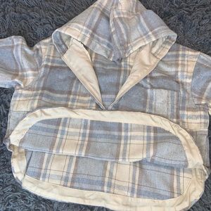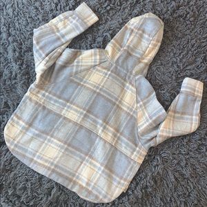 Get this cute plaid pullover sweatshirt. Made with with 20% cotton.
