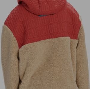 This hooded half-zip pullover is made from cozy sherpa and logo-embellished quilted nylon for varied texture and an unparalleled wearing experience. Featuring convenient kangaroo pockets lined in fleece to keep the heat in your hands, it's finished with stylish contrast colors, additional hidden pockets, and a drawcord-adjusted hem for the perfect fit.