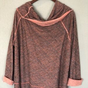 This is a really comfortable sweatshirt / pullover top. It's made of a lighter material that is really comfortable. It hangs loose and is super comfortable. It can be worn with yoga pants or with jeans. Casual, but can be paired with a dressy pair of pants to "dress it up". It's on the larger side. I am normally a small and I can wear it, but it hangs off my shoulders and would be better for a medium or large. It's a size "2" but that's sizing where size 1 is small to medium, and size 2 is a medium to large. It's very comfortable. Can be worn over an athletic top and then taken off easily after a warm up. Lots of uses! No stains, or pulls.