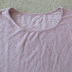 Pullover Womens Blouse Shirt Size Large Pink Mauve Short Sleeve Crew Neck Top