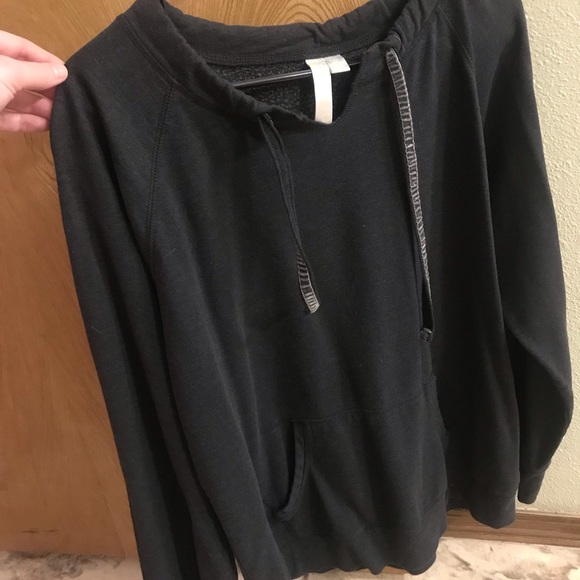 Pullover jacket with hoodie pocket without the hood. Sooo soft and comfy.