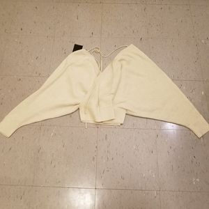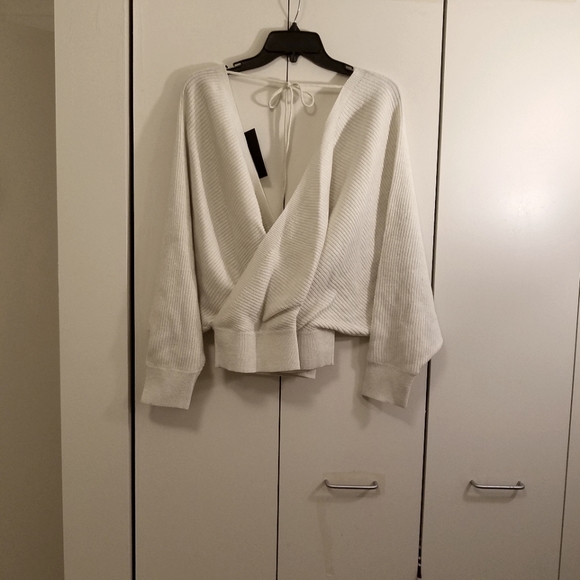 Dolman Sleeve Pullover Ribbed Top Surplus off white /Combo has gold threads running though out top tie back Size:M/L 88% Acrylic 12% Polyester