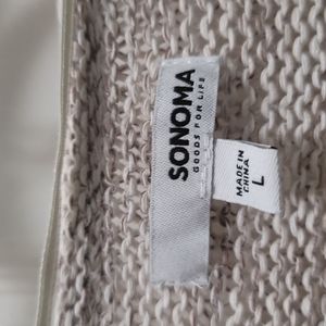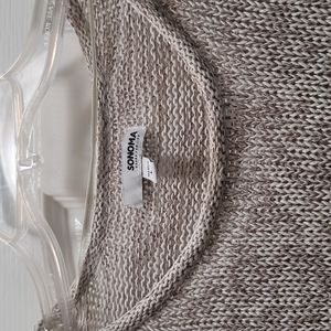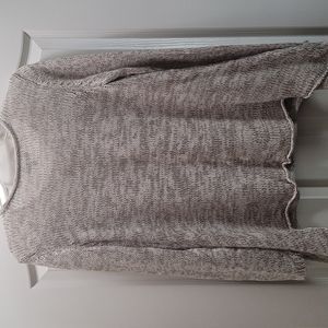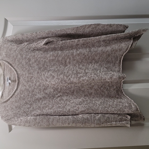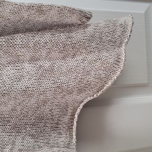 Soft and comfy shark bite hemline sweater. Tan and white. No stains or tears. Cotton, polyester. Smoke free home. Offers are welcome.