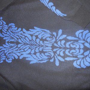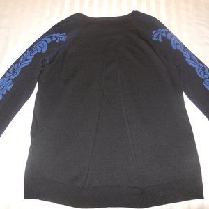 Pullover Sweater NEW Black Blue Ornamental Knit Top Long Sleeve