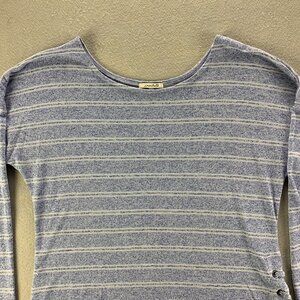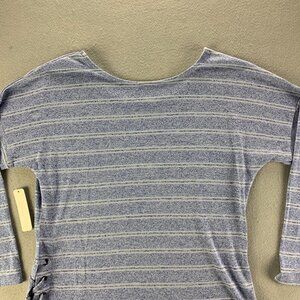 Pullover Sweater Womens Extra Large Blue Stretch Thin Striped Shirt Side Tie