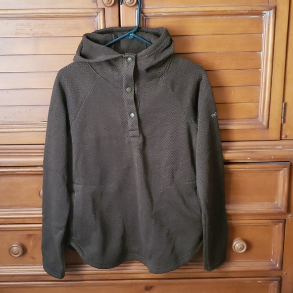 Olive color hooded pullover jacket, with pockets on both sides, size medium. NWT. Husband bought for me, not my style or preference & I waited too long to return.
