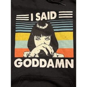 Pulp Fiction ‘I Said Goddamn’ Hoodie Large Pullover Black Uma Thurman Tarantino