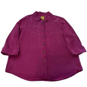 Pulp Magenta Button Down Tencel Shirt XL | Soft Lightweight Long Sleeve Top